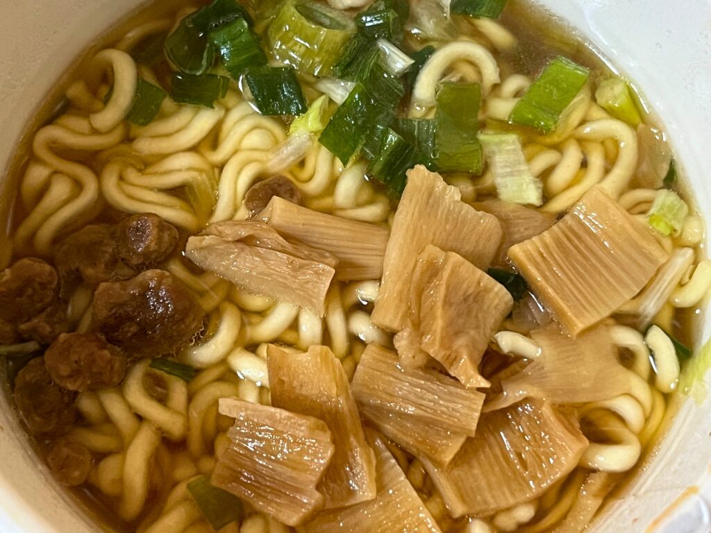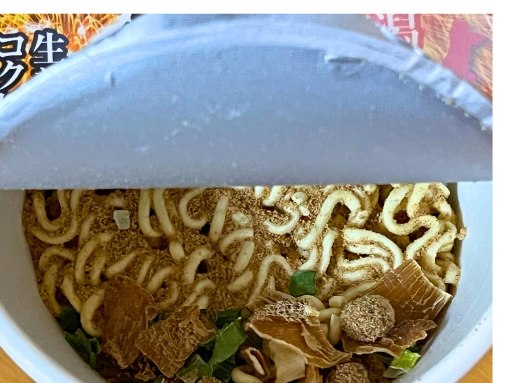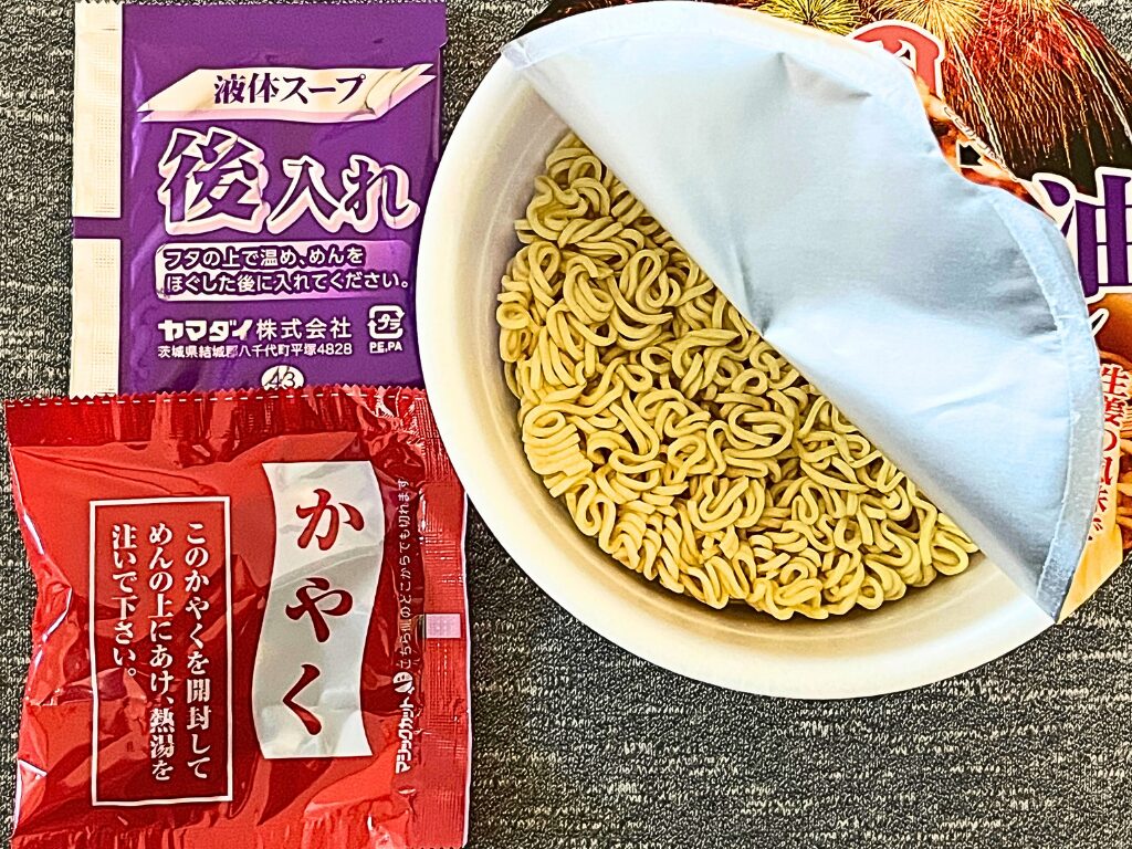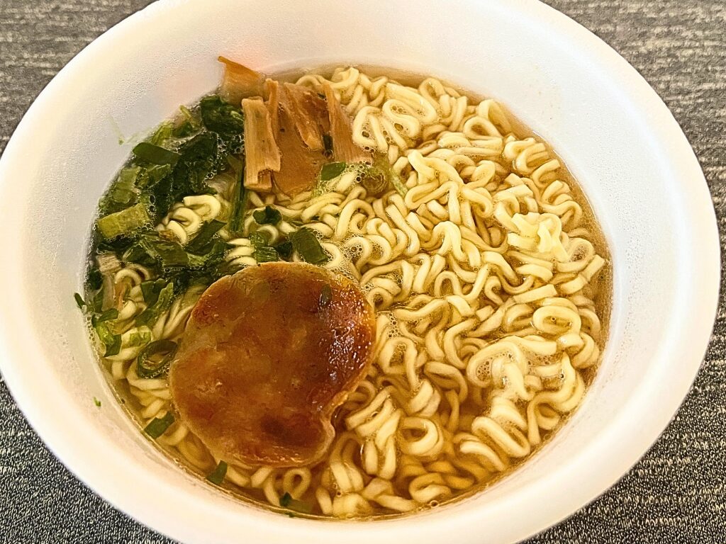 後入れのスープを入れると生姜の風味が香ってくるので期待が高まりましたが、フライ麺が生姜の風味を相殺してしまっているので「凄麺」と比較してしまうと生姜醬油ラーメン感はあまり強くない
