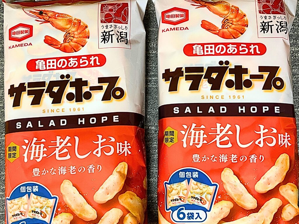 亀田製菓のサラダホープはお盆休みや年末年始後のスーパーでは、帰省した人達がまとめ買いしていくため個包装タイプの売り切れが続出して、地元民でも入手できなくなるくらいの人気商品です