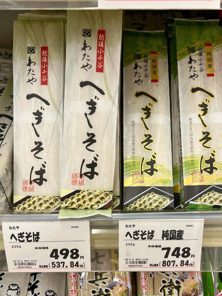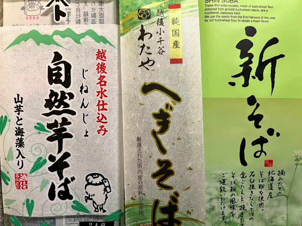 今回も様々な「へぎそば」をご家庭でも味わっていただけるよう、今までご紹介できなかった新潟県内のスーパーで手に入る乾麺を購入してきました。