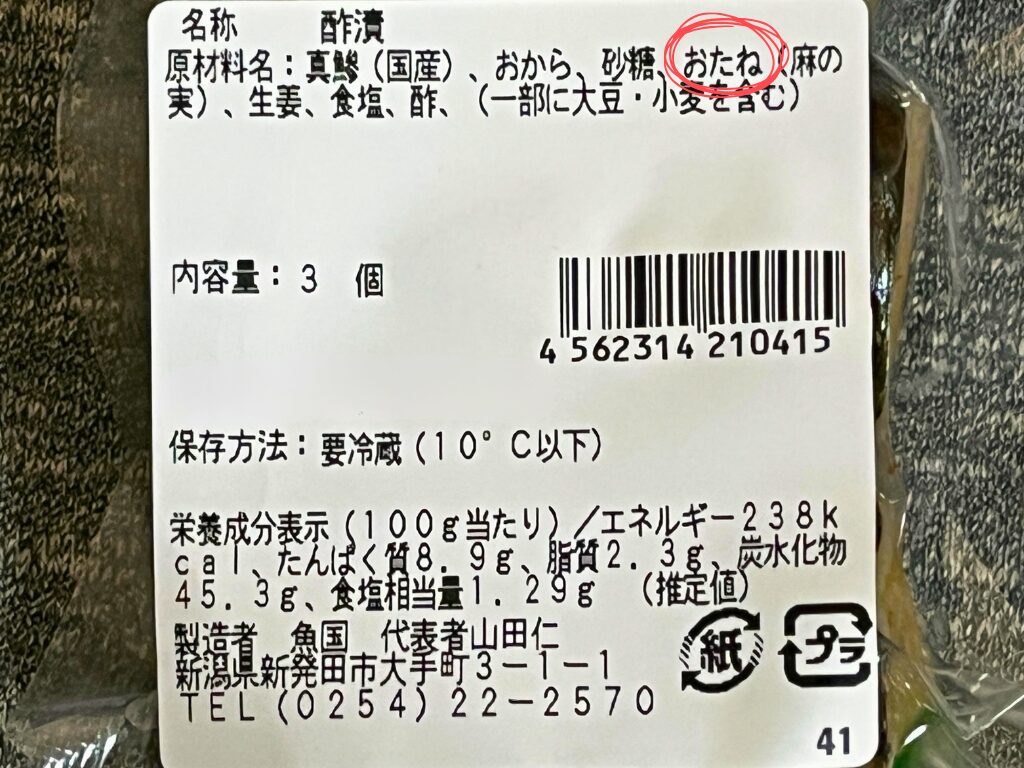 製造者は新発田市内の老舗鮮魚店の魚国さん。