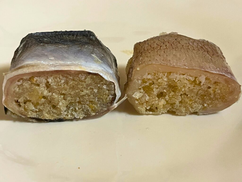 これらを塩と酢でしっかりと締め、一晩寝かせることで旨味を凝縮させます。