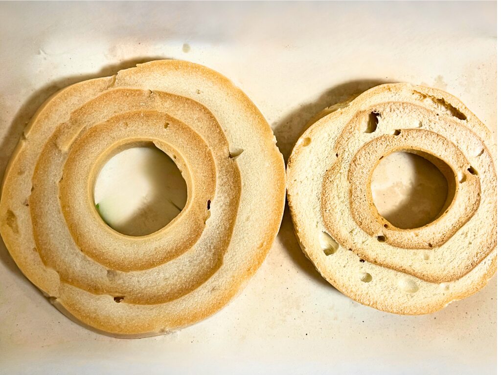 断面を見ると「あれ、これバウムクーヘン?」と一瞬錯覚するレベル。