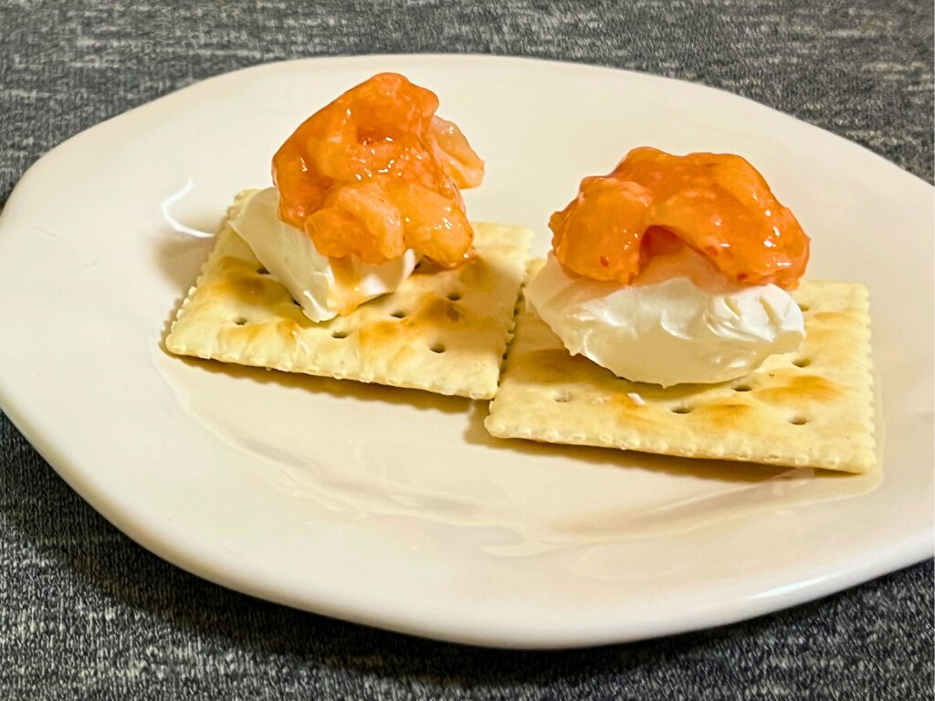 意外な組み合わせですが、クリームチーズのコクと、かんずりの風味は相性抜群。