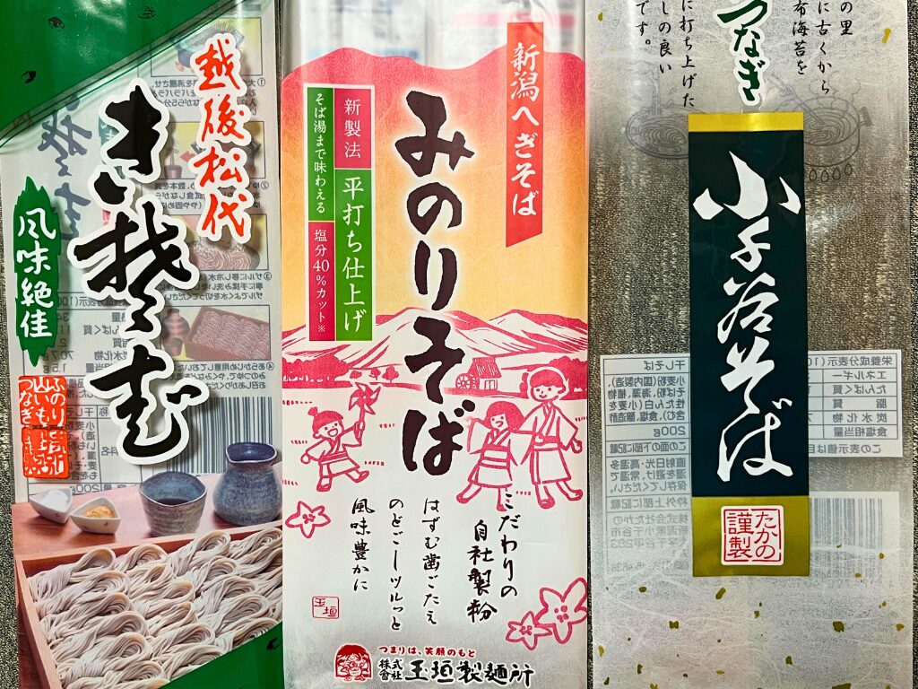 今回も様々な「へぎそば」をご家庭でも味わっていただけるよう、今までご紹介できなかった新潟県内のスーパーで手に入る乾麺を購入してきました。