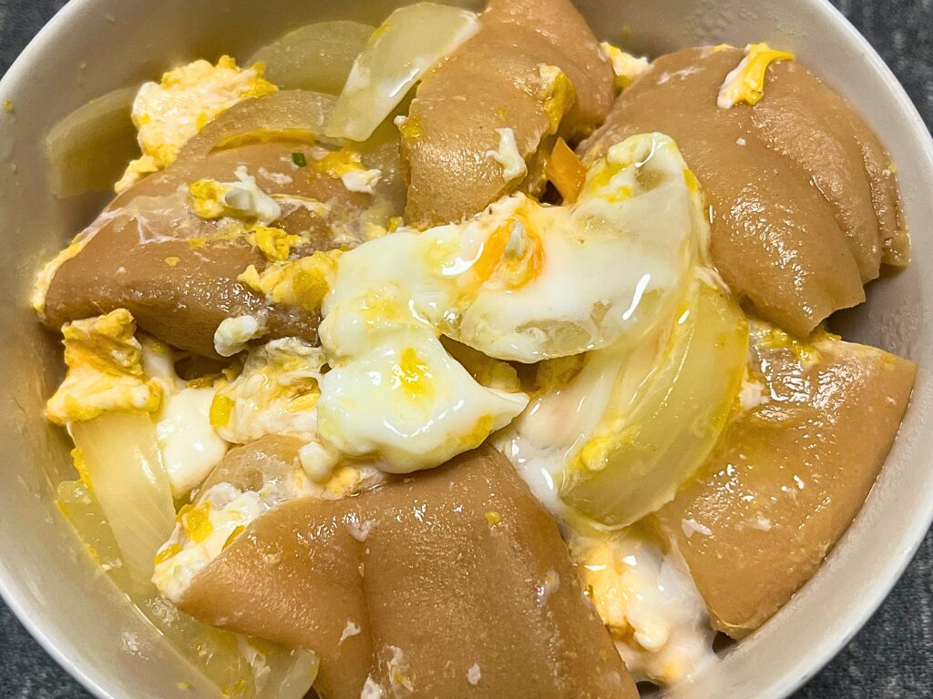 車麩の場合は「かつ丼風」になりますが、こちらは「親子丼風」に仕上がります。
