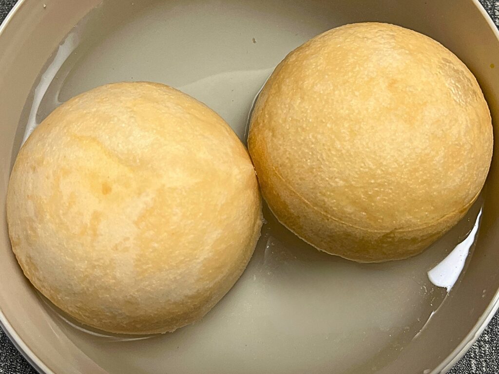 裏側に箸で穴を開けたり、事前にカットして全体を水没させます。