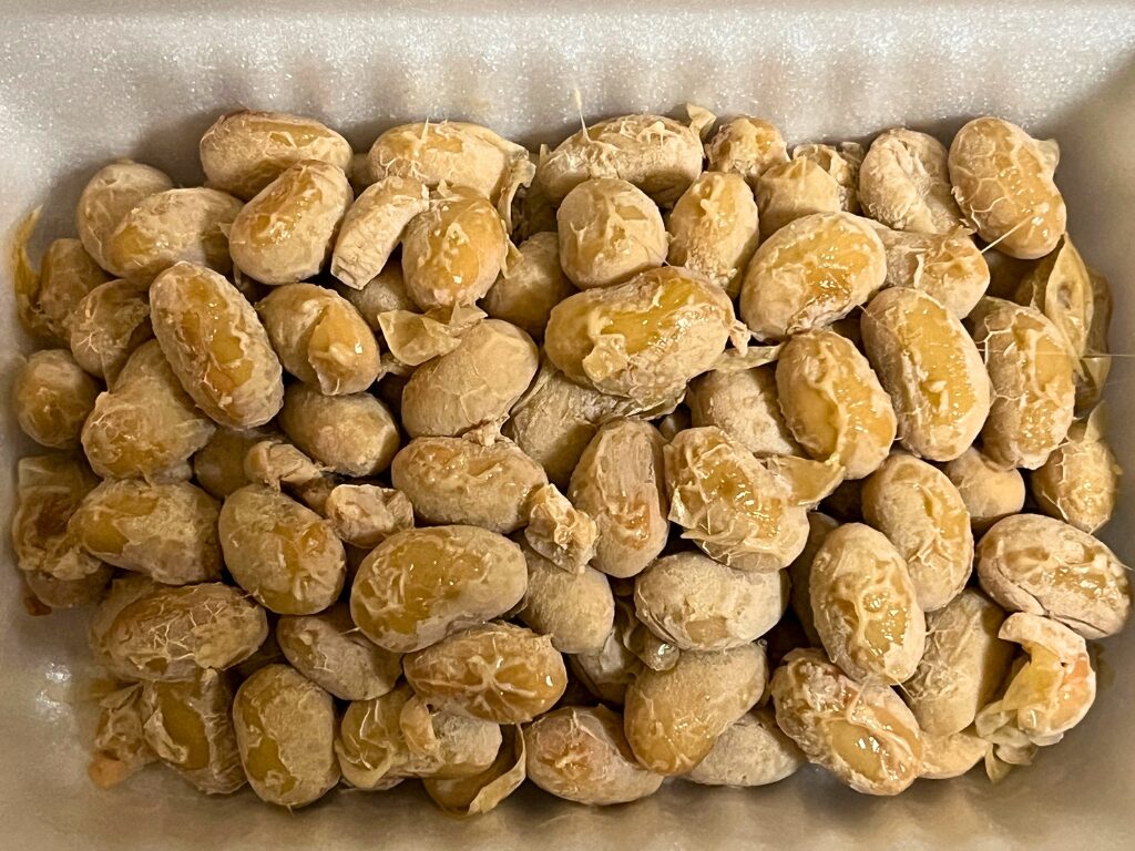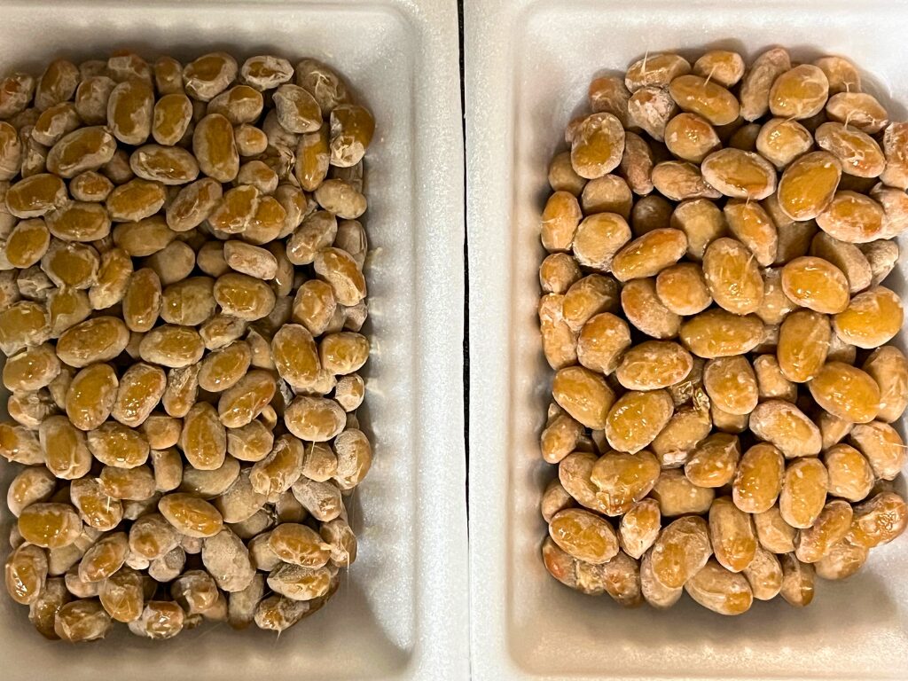 比較すると、白糸納豆と同じく大粒タイプはゴロゴロ感がよくわかります。