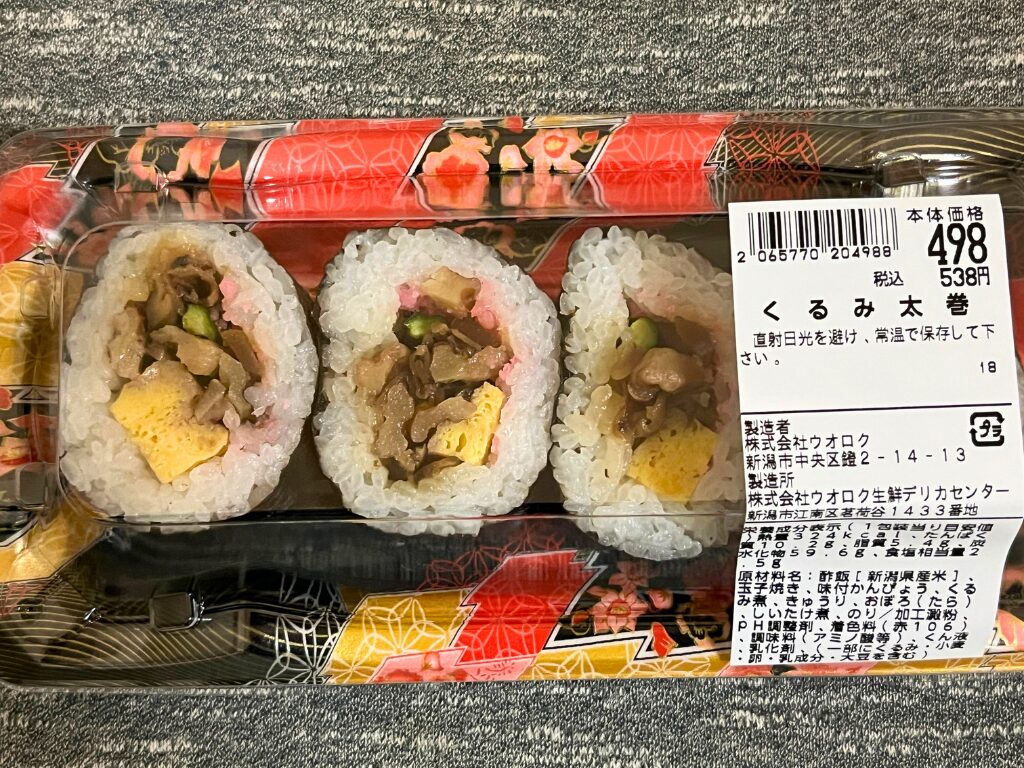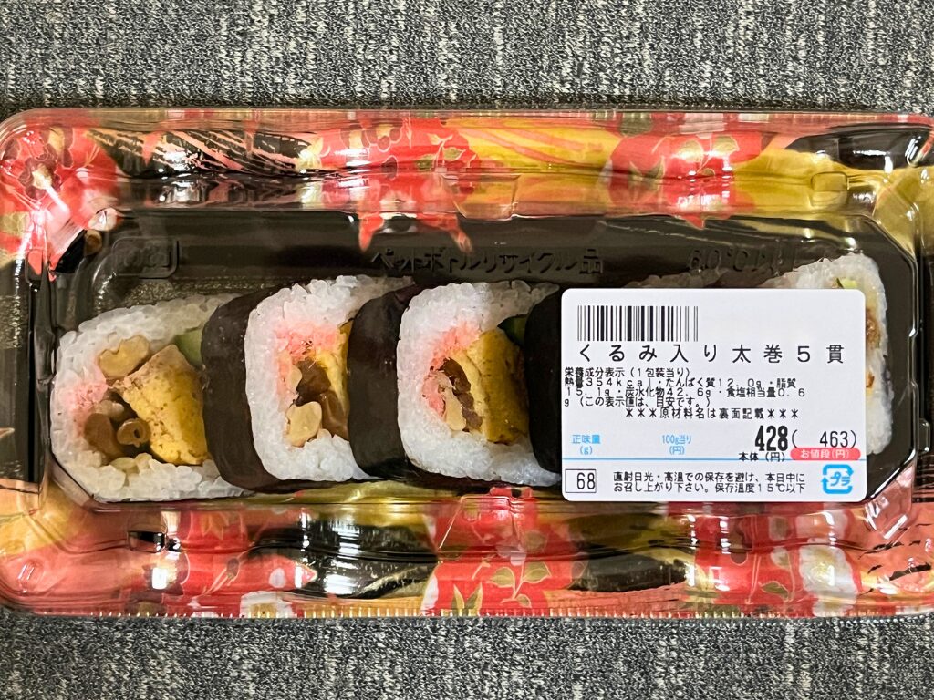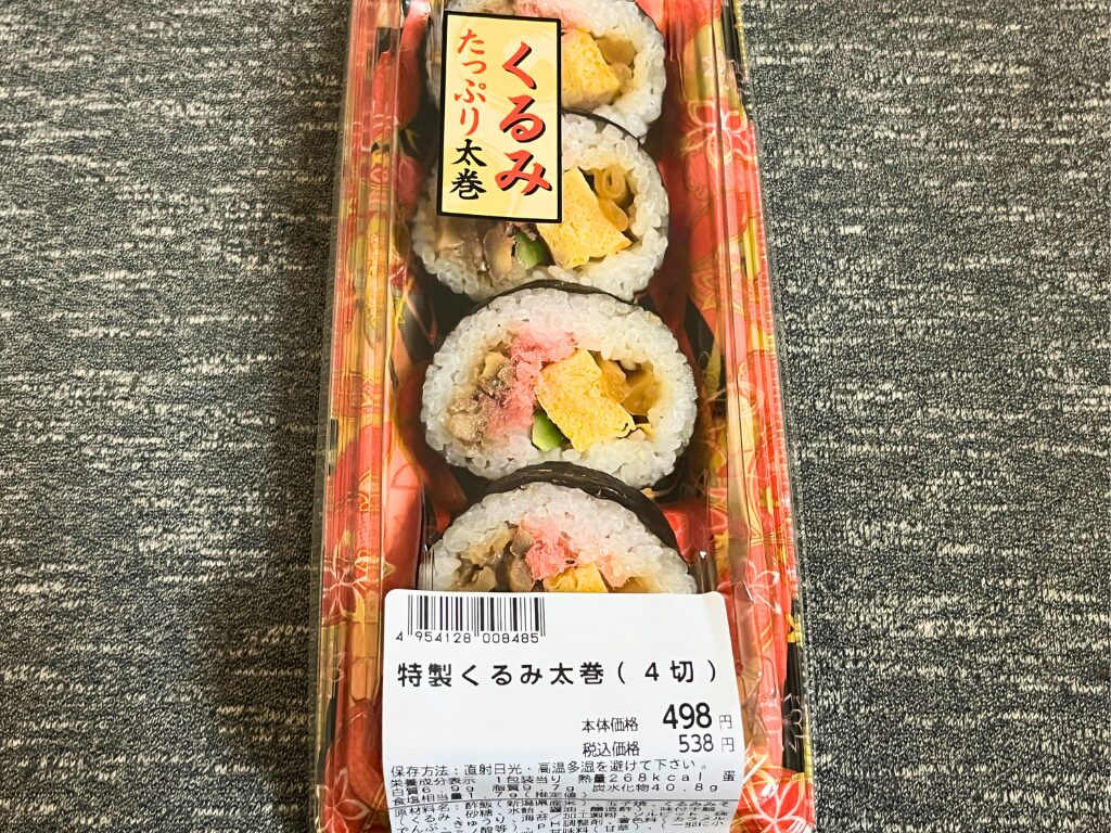 今回は手軽に購入できるスーパーで売っている「くるみ太巻」を購入し比較していきます。